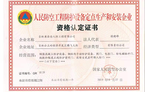 吉林省浩安人防工程有限公司是經(jīng)國家人民防空辦公室批準(zhǔn)成立的人防工程防護(hù)設(shè)備定點(diǎn)生產(chǎn)廠,2019年認(rèn)定為國家級(jí)高新技術(shù)企業(yè)。本廠擁有現(xiàn)代化的廠房及先進(jìn)的生產(chǎn)設(shè)備,集生產(chǎn)制造、質(zhì)量控制、銷售服務(wù)為一體的區(qū)域性行業(yè)廠。公司座落在吉林省公主嶺經(jīng)濟(jì)開發(fā)區(qū),占地面積達(dá)10000平方米,辦公樓1200平方米,廠房建筑面積達(dá)6000平方米以上,注冊資金1000萬元,企業(yè)的技術(shù)力量雄厚,其中防護(hù)工程師,高級(jí)工程師及中高級(jí)專業(yè)技術(shù)人員占30%。青海分公司2018年10月15日成立,于當(dāng)年11月26日通過 青海人民防空辦公室備案公示。 本廠經(jīng)營的主要產(chǎn)品:連續(xù)玄武巖纖維新型人防防護(hù)門、鋼結(jié)構(gòu)人防防護(hù)門、鋼筋混凝土人防防護(hù)門以及各種型號(hào)的通風(fēng)設(shè)備和防化設(shè)備。本廠生產(chǎn)設(shè)備齊全,擁有雄厚的生產(chǎn)能力和技術(shù)水平,并嚴(yán)格按照國家相關(guān)標(biāo)準(zhǔn)生產(chǎn)和安裝。2015年5月15日正式開業(yè)至今,承接吉林省人防工程項(xiàng)目上百項(xiàng),總施工面積超過百萬平方米。工程項(xiàng)目包含人防指揮所、醫(yī)院、地下商場、商場、學(xué)